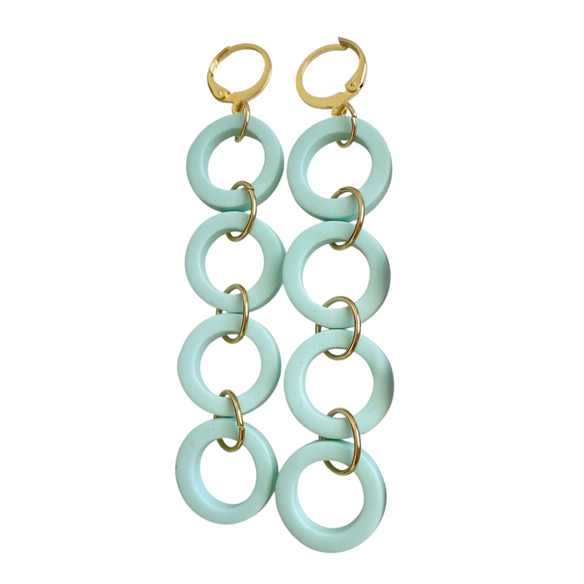 Las medidas de estos pendientes son de 8 cm X 1,5 cm